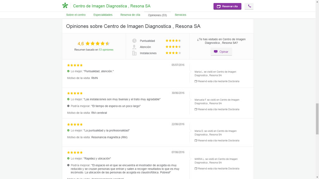 Para poder mejorar nuestros servicios, conocer las opiniones de nuestros pacientes es fundamental. Nuestros pacientes tienen diferentes vías para hacernos llegar sus sugerencias e impresiones sobre nuestros servicios, vía mail resona@resona.es, a través del portal de Doctoralia, y físicamente a través de nuestro buzón situado en la recepción de la Clínica.